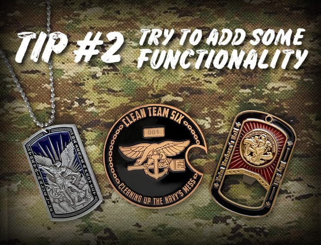If you’re going to make a custom cut-to-shape challenge coins, why not add some functionality? Using an existing cutout in the edge of the coin as a bottle opener is a great way to take your coin to the next level! Let us know If there is something you’d like to add specifically to your design. Our talented team of artists can help you find a way to incorporate what you want into your design.